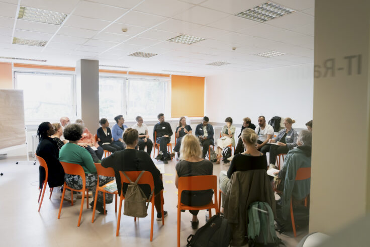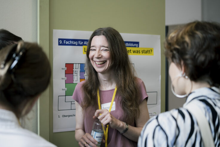Neu in diesem Jahr war der Workshopteil als Barcamp: In Gruppen wurden aktuelle, selbstgewählte Themen diskutiert. Am Ende kamen acht Themen zusammen: Sie reichten von „Woran erkennen wir Teilhabe?“ über „Austausch über Methoden in der Beratung von betroffenen Menschen“ bis hin zu „Was braucht es, um Grundbildung bildungspolitisch zu verstetigen?“ – offen, praxisnah und lebhaft.