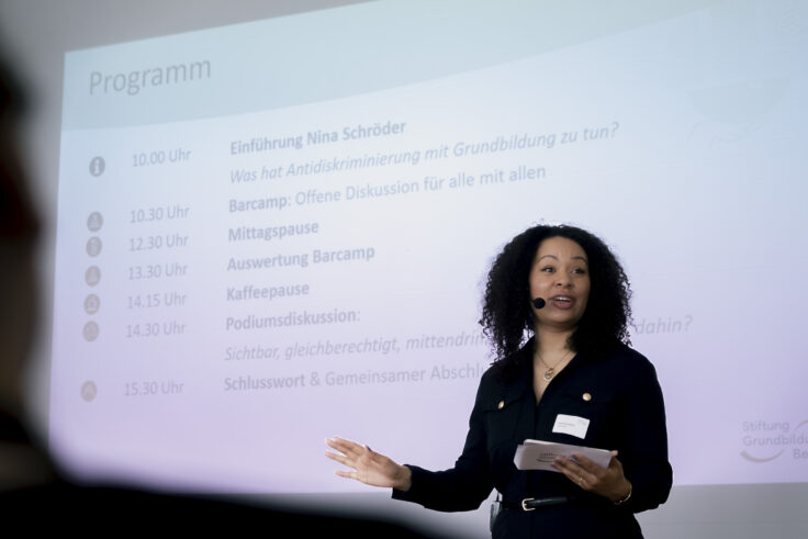 Am 25. Juni fand der 9. Berliner Fachtag für Alphabetisierung und Grundbildung erstmals unter unserem neuen Namen Stiftung Grundbildung Berlin statt. Rund 150 Fachleute und Lerner:innen aus Berlin und dem Bundesgebiet kamen unter dem Motto „Raus aus dem Tabu, rein in die Teilhabe“ zusammen, um darüber zu sprechen, wie Ausgrenzung abgebaut und Teilhabe für gering literalisierte Menschen verbessert werden kann.
