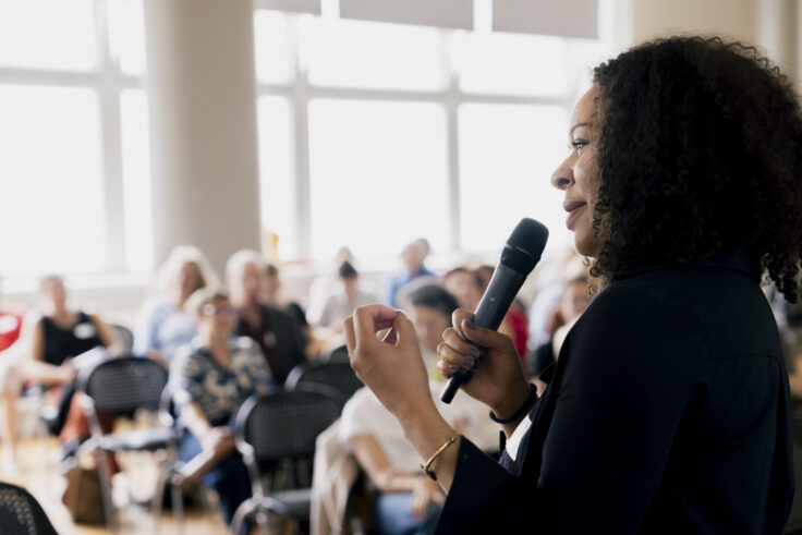 Unsere Vorständin Theresa Hamilton machte in der Begrüßung deutlich, wie wichtig es ist, die Perspektive betroffener Menschen in den Mittelpunkt zu stellen, und zeigte ein Videostatement von Lernerin Steffi Barkowski: